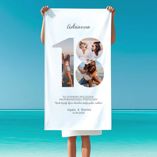 Personalizowany ręcznik – Prezent na 18. urodziny ze zdjęciami i imieniem