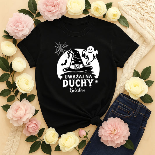 Koszulka spersonalizowana „Uważaj na Duchy” – Halloween tshirt z imieniem