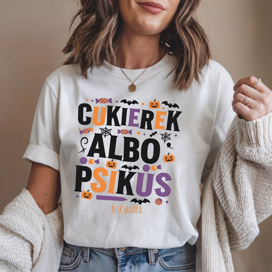 Koszulka Halloween „Cukierek albo Psikus” – personalizowana koszulka Unisex