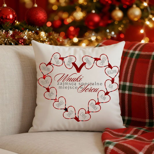 Personalizowana Poduszka „Wnuki Zajmują Specjalne Miejsce w Sercu” – Prezent dla Babci i Dziadka z Imionami Wnuków