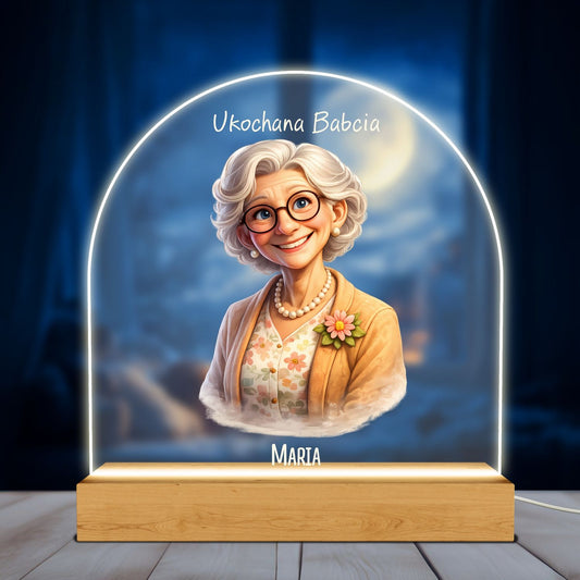 Personalizowana lampka LED na akrylu - Ukochana Babcia lub Ukochany Dziadek z imieniemб Prezent dla Babci i Dziadka
