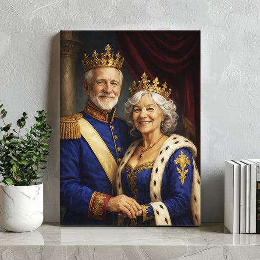 Personalizowany Portret Królewski ze Zdjęcia - Zamień Swoje Zdjęcie w Króla i Królową, Obraz na Płótnie