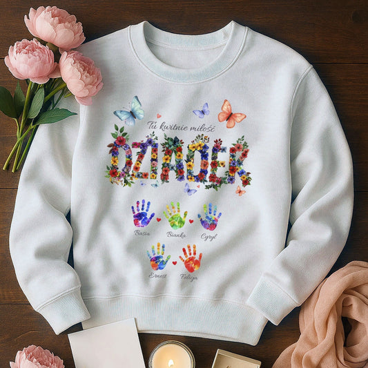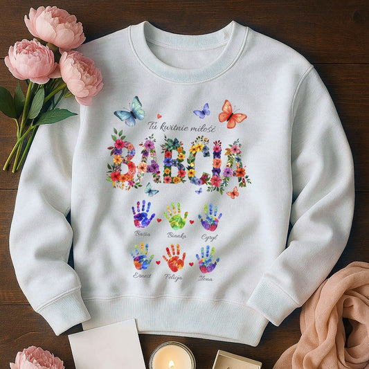Personalizowany Bluza „Babcia – Tu kwitnie miłość” z Imionami Wnuków