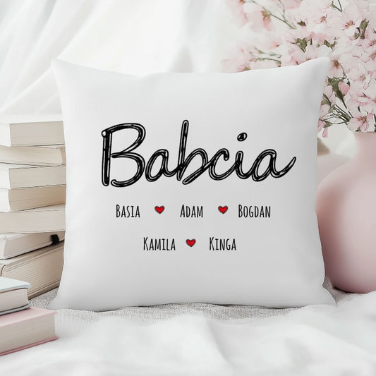 Babcia z Imionami Wnuków - Personalizowana Poduszka Pełna Miłości, Idealny Prezent dla Babci
