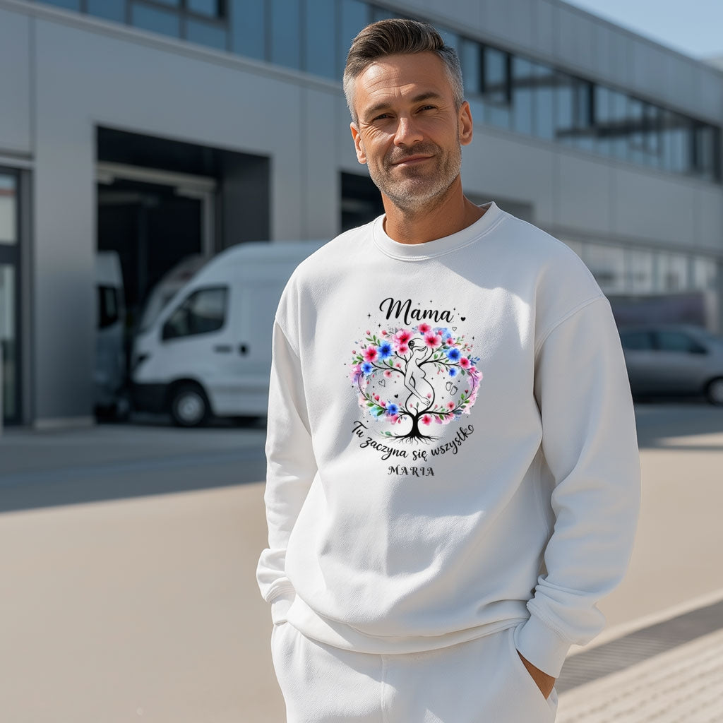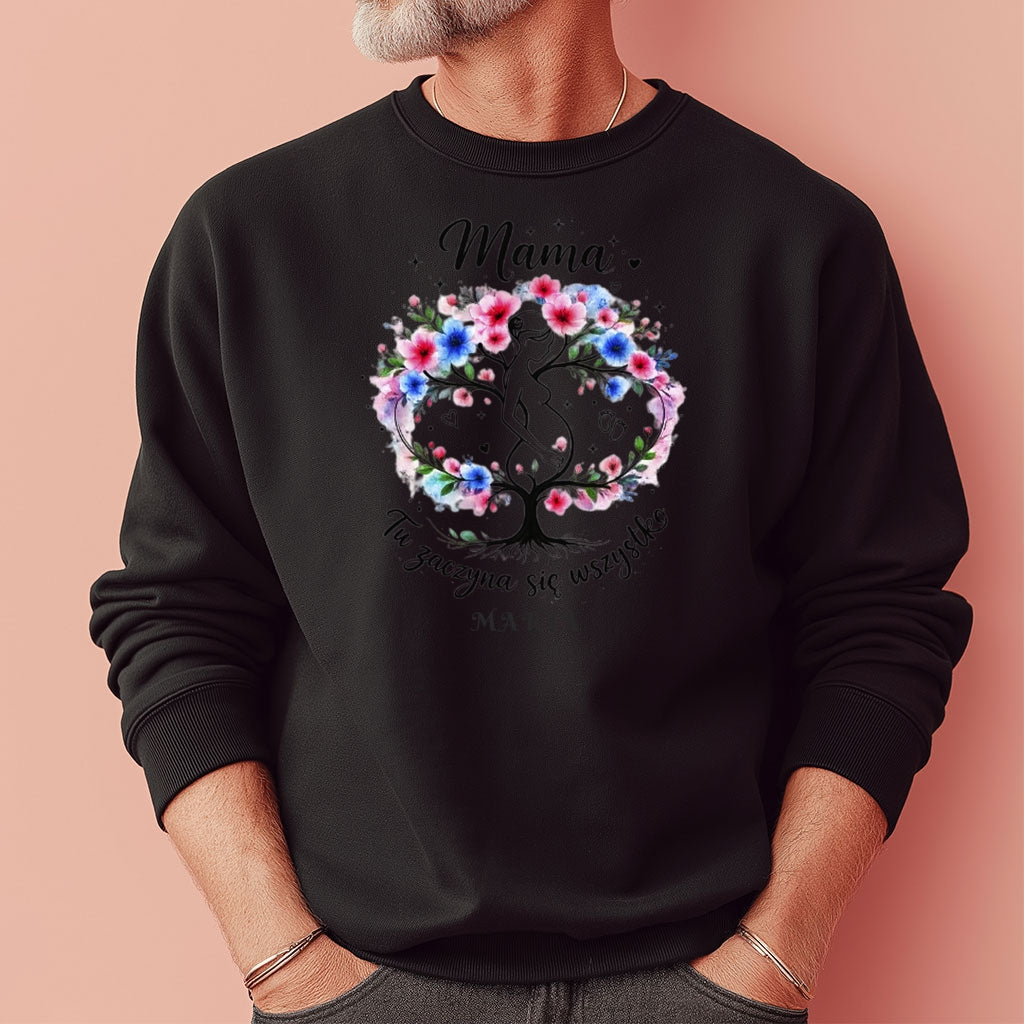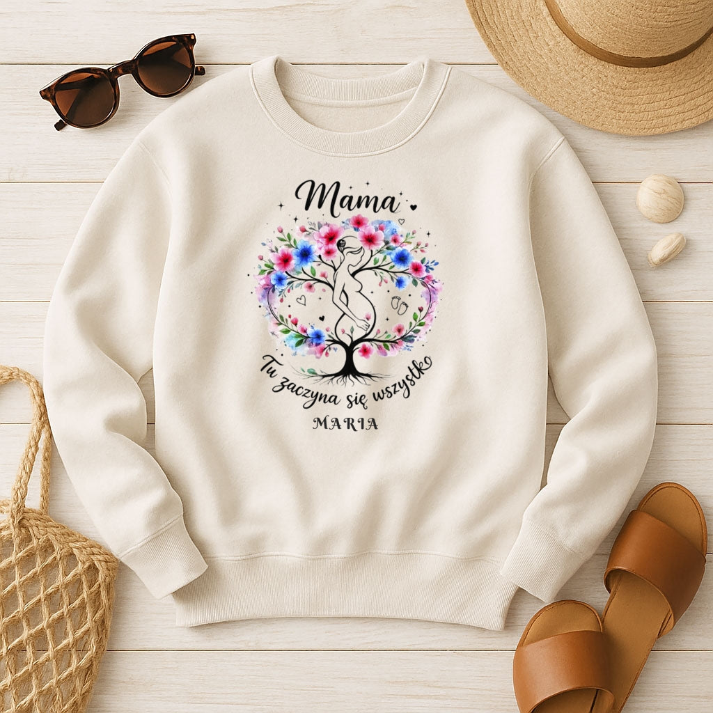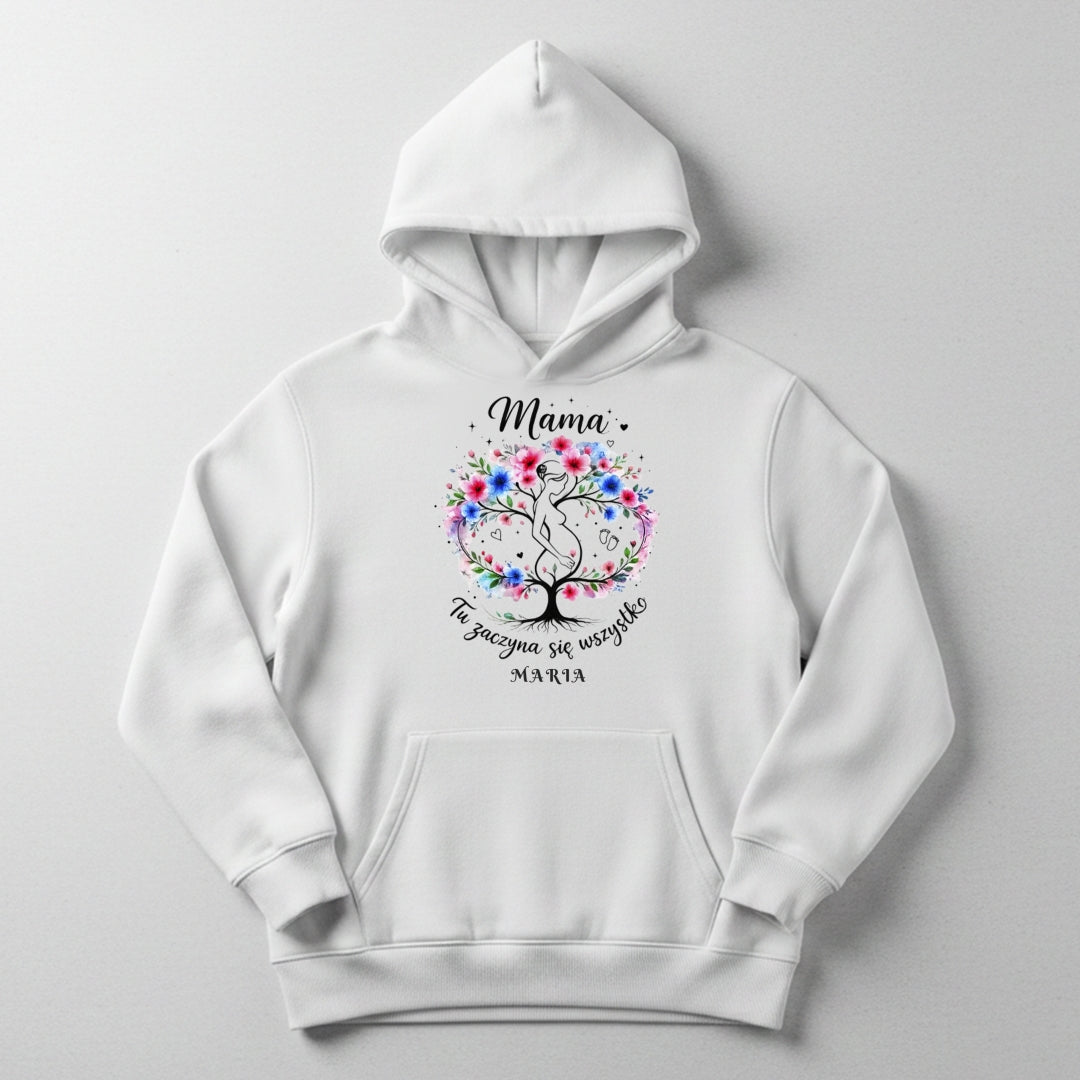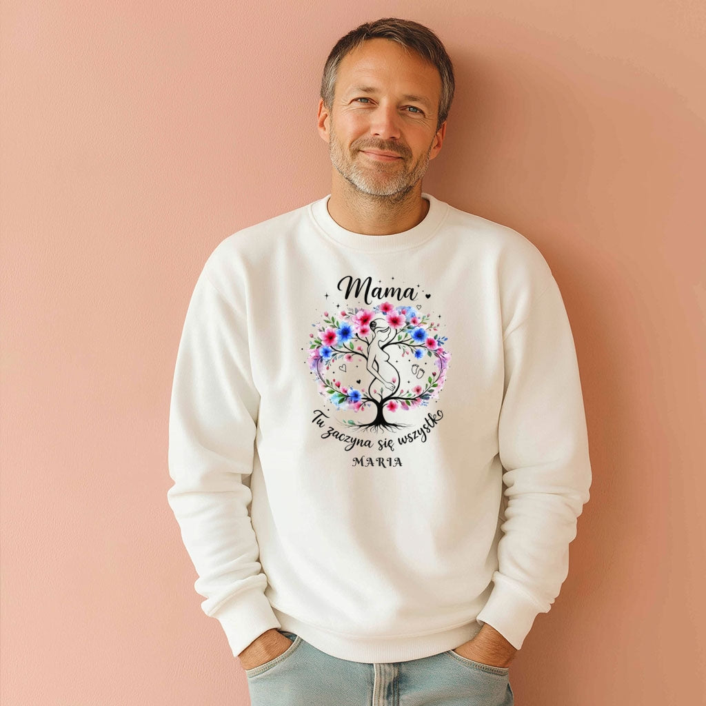 Personalizowana koszulka dla przyszłej Mamy z napisem „Mama – Tu zaczyna się wszystko” to wzruszający i symboliczny projekt stworzony specjalnie dla kobiet w ciąży.