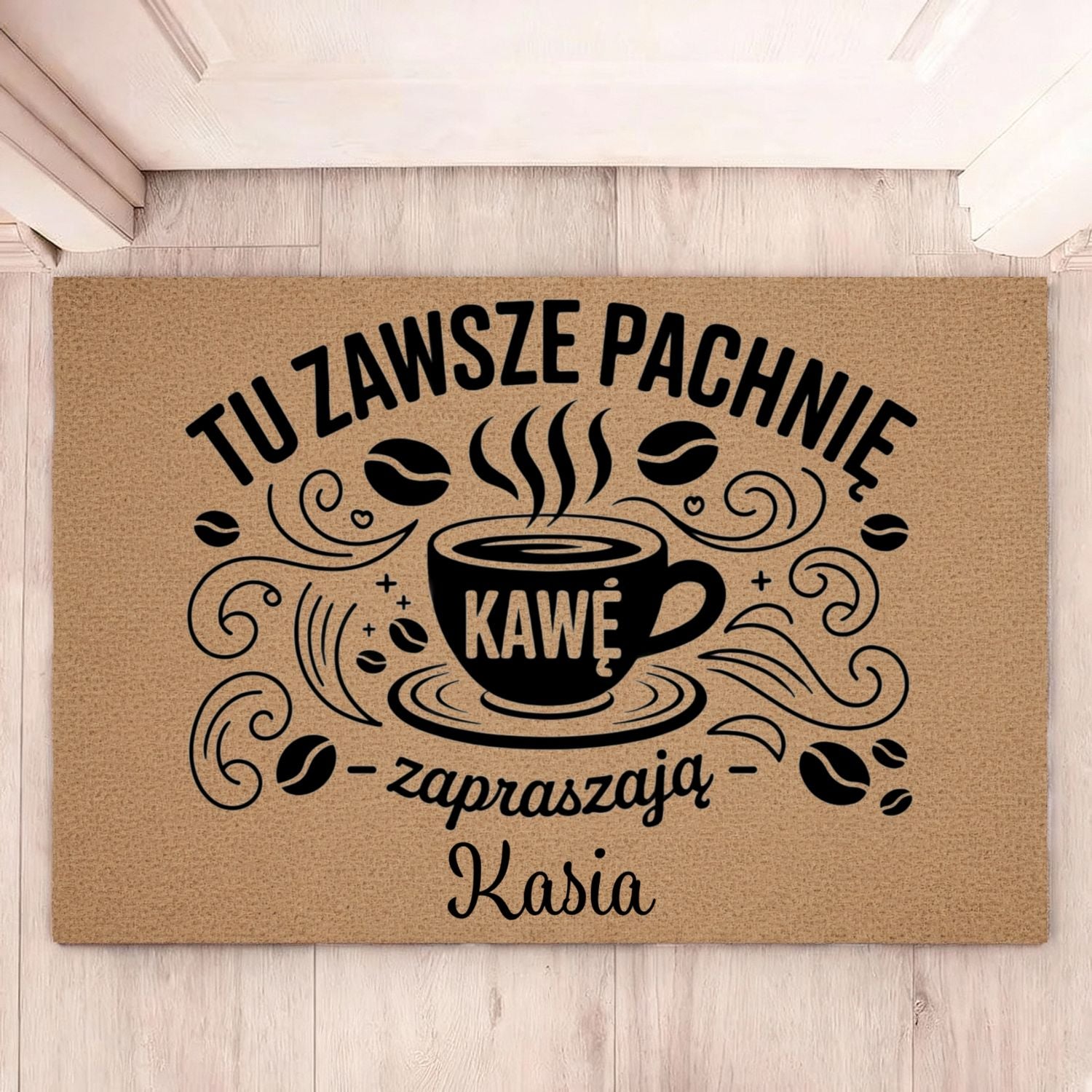 Dodaj do swojego domu wyjątkowy akcent, który od progu roztacza atmosferę ciepła i gościnności. Personalizowana wycieraczka „Tu zawsze pachnie kawą” to idealny wybór dla miłośników kawy, którzy chcą podkreślić charakter swojego wnętrza i przywitać gości w niepowtarzalny sposób.