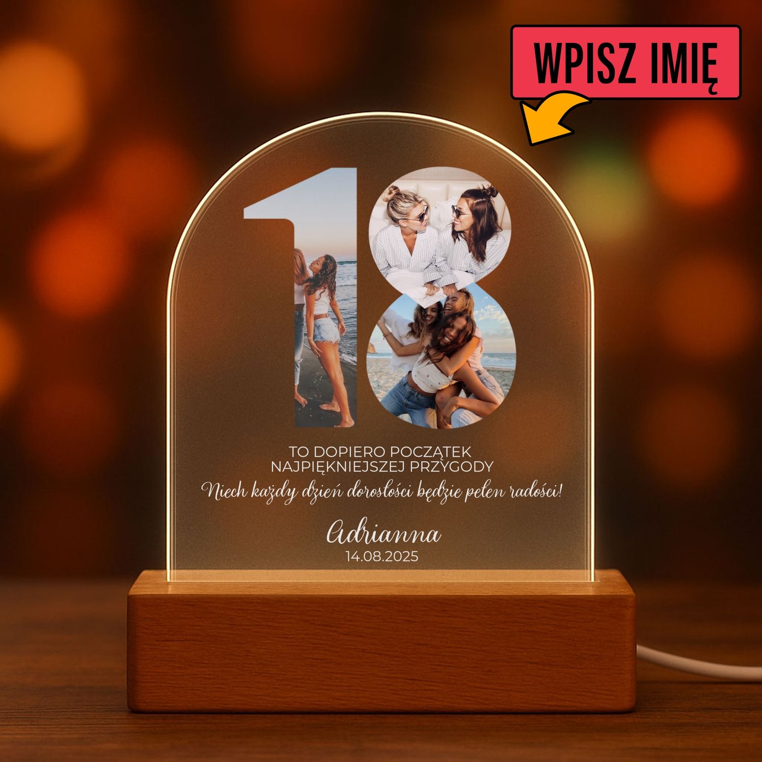 18 urodziny to jeden z najważniejszych dni w życiu – moment przejścia w dorosłość i czas, który zasługuje na wyjątkową pamiątkę. Nasze personalizowane szkło akrylowe z podświetleniem LED to nie tylko prezent, ale także elegancka dekoracja, która będzie przypominała o tym dniu przez wiele lat. ✨