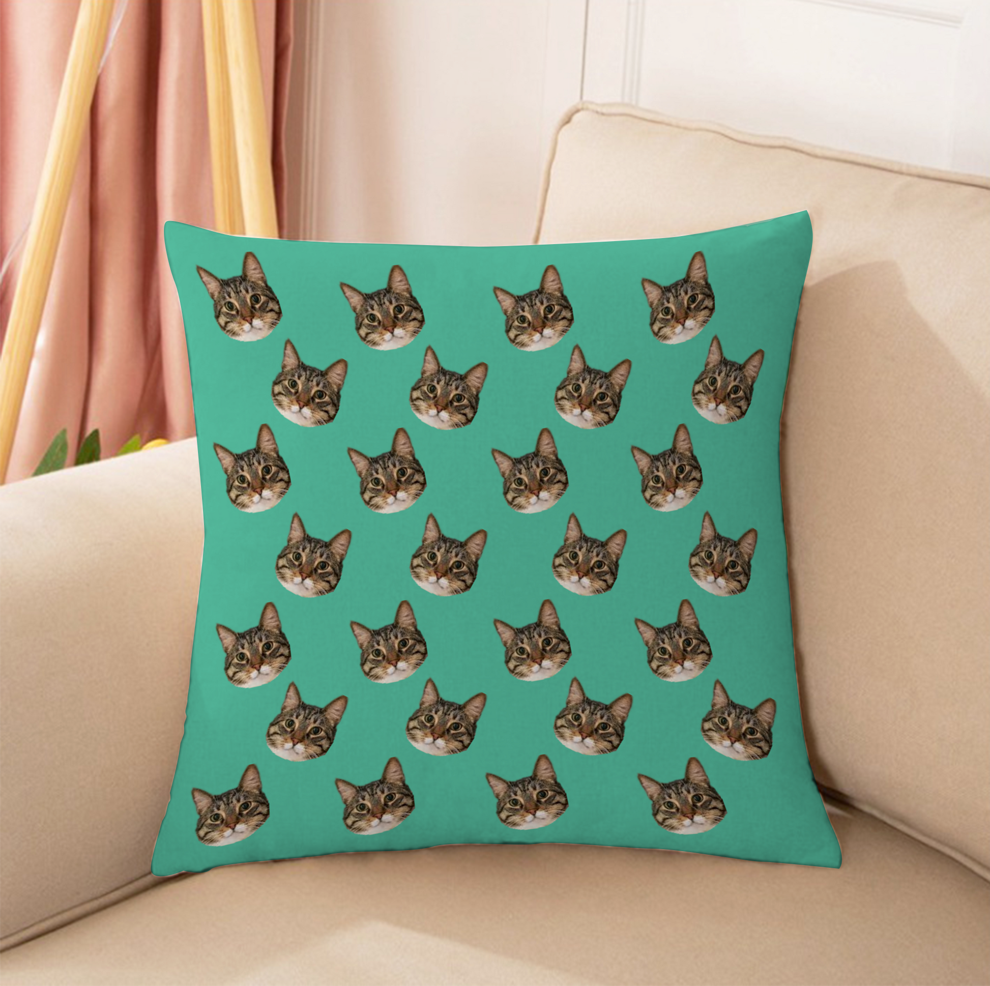 Ta spersonalizowana poduszka z Twoim zwierzakiem to idealny sposób, by pokazać światu, jak bardzo go kochasz. Wystarczy jedno zdjęcie Twojego kota lub psa, a my stworzymy unikalny wzór z jego pyszczkiem — powielonym na modnym tle w wybranym kolorze.