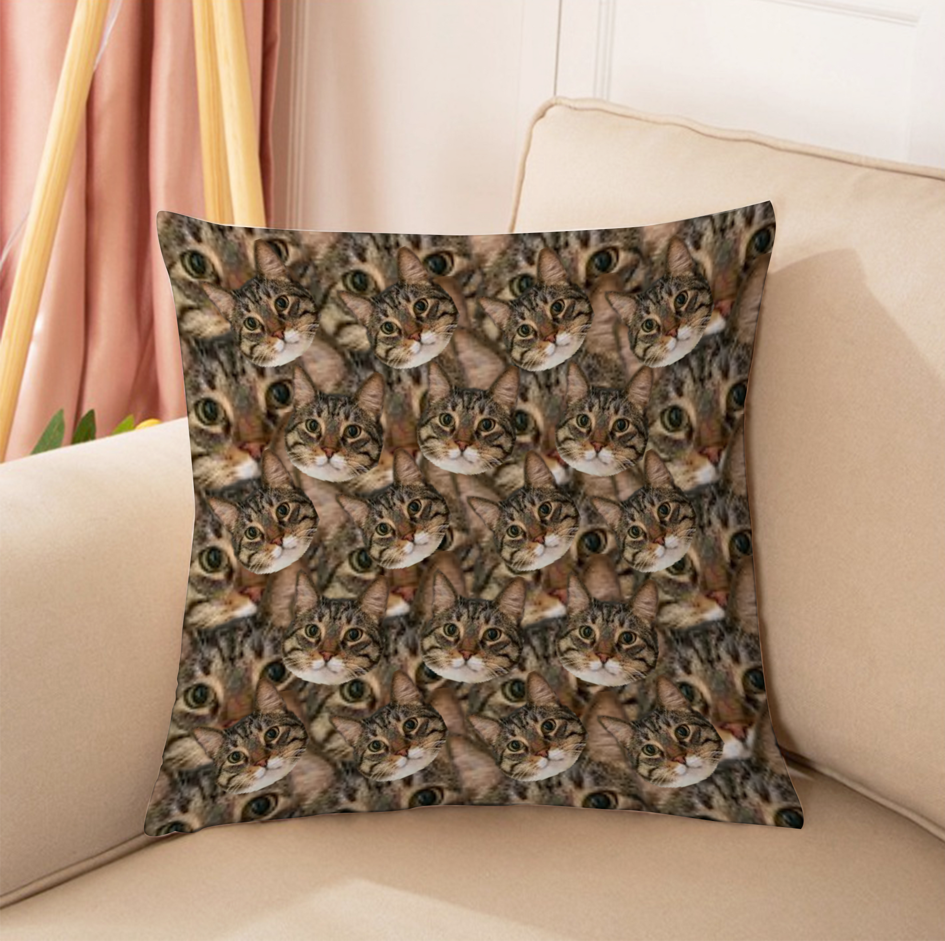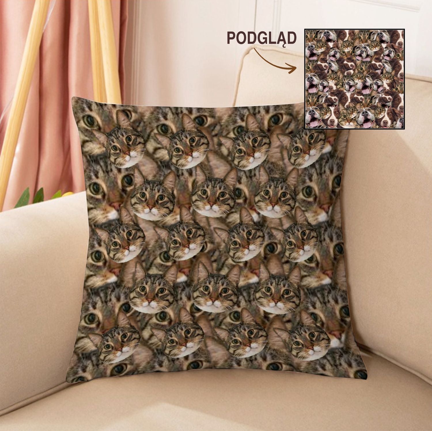 Ta personalizowana poduszka z Twoim zwierzakiem to idealny sposób, by zatrzymać jego uroczy pyszczek zawsze blisko. Wystarczy przesłać zdjęcie swojego kota, a stworzymy unikalny wzór z jego twarzą — powieloną w zabawnym, stylowym patternie.