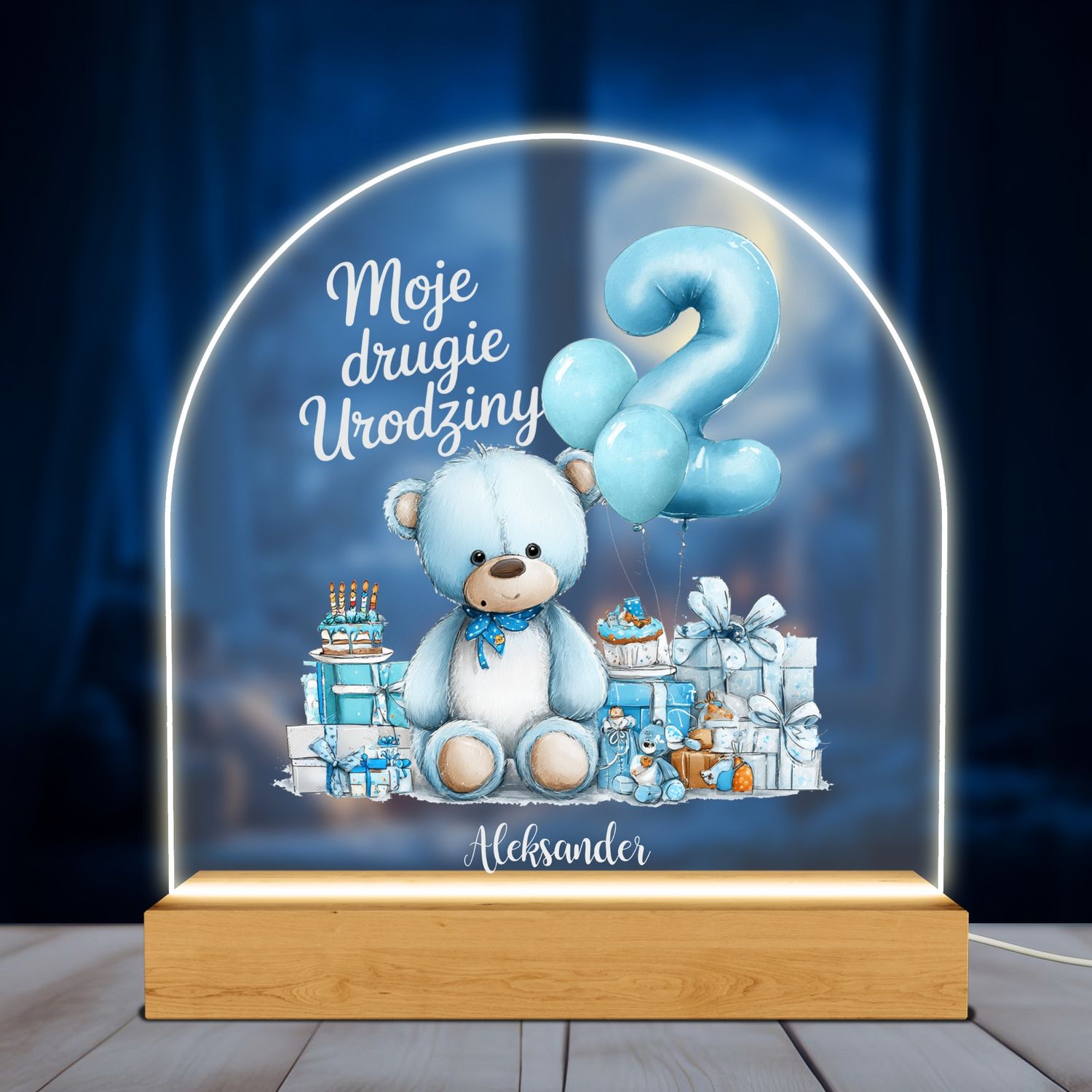 Spersonalizowana lampka LED z uroczą grafiką i imieniem dziecka to ciepły i wzruszający upominek, który rozjaśni każde wnętrze i serce mamy.