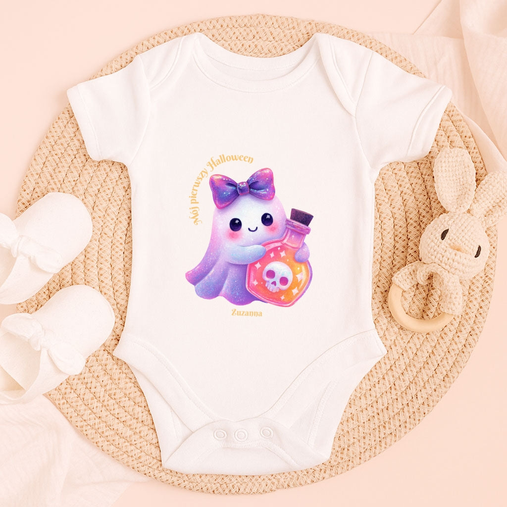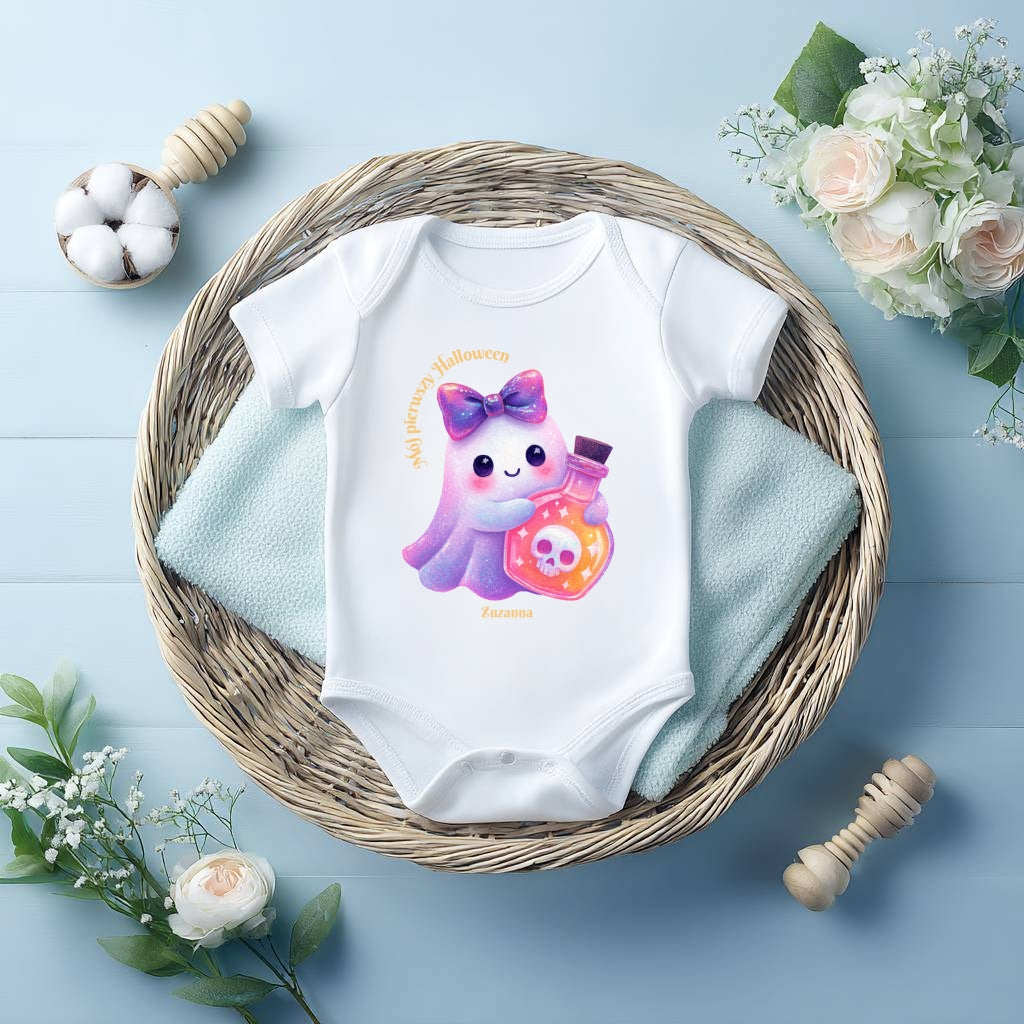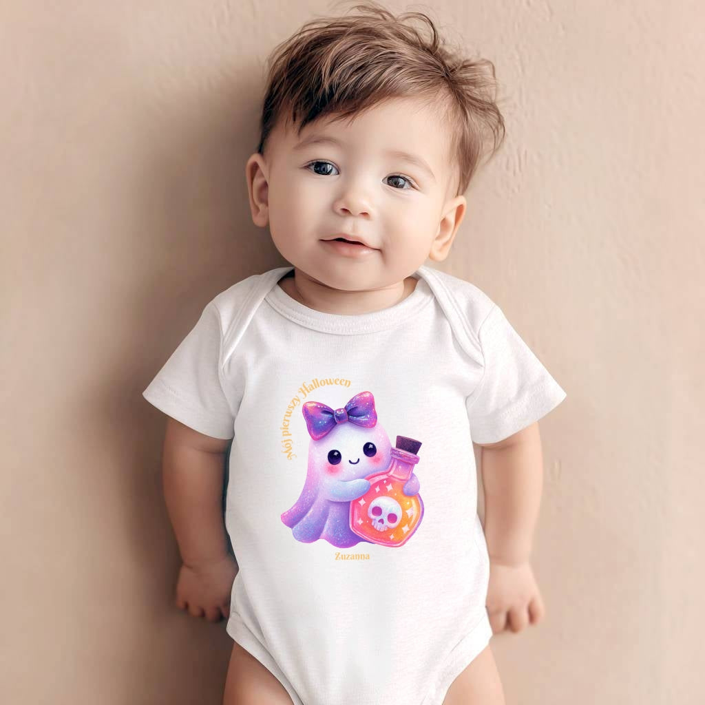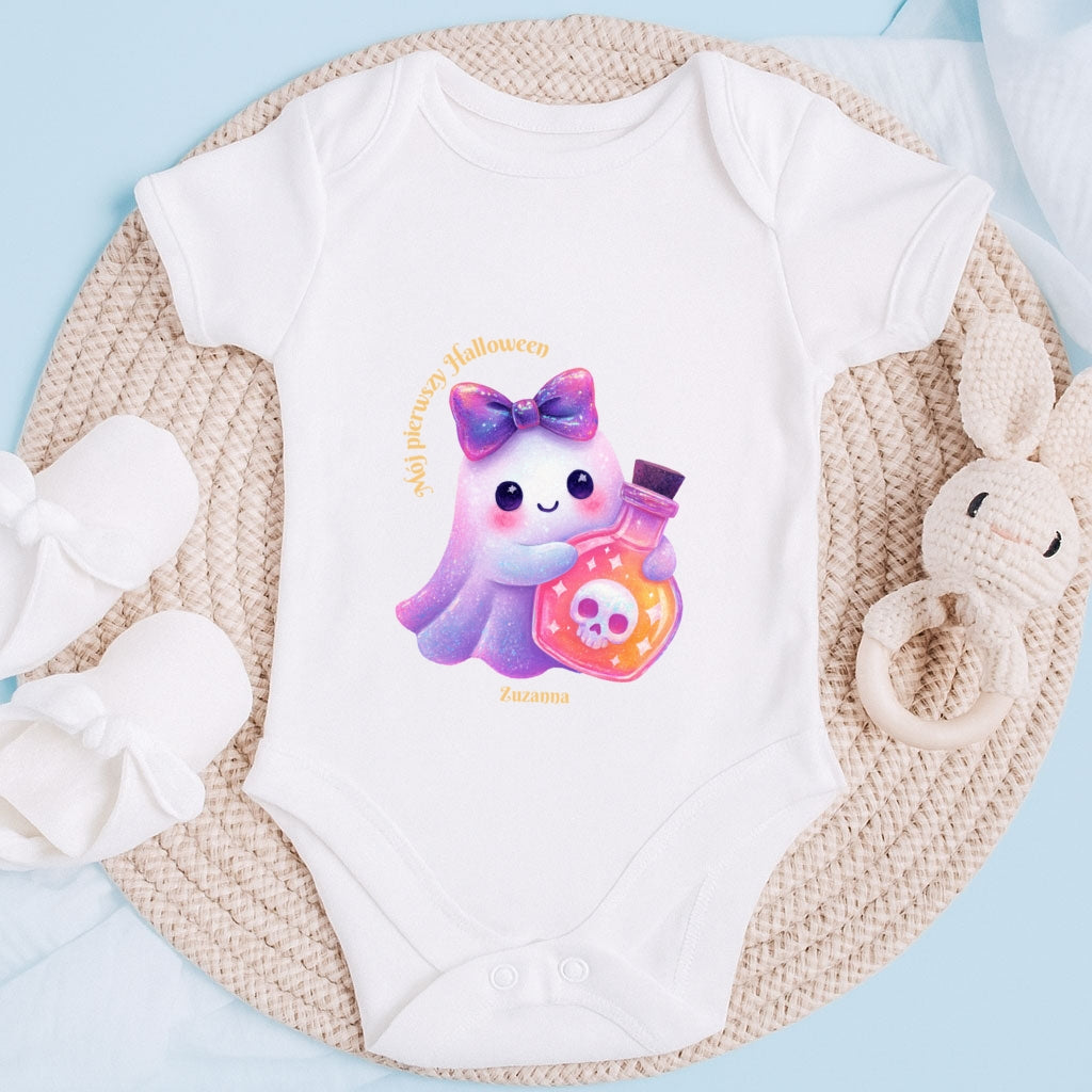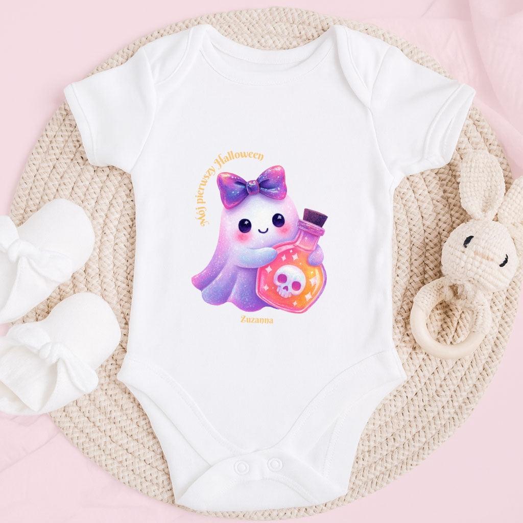 Spersonalizowany Body na Halloween z Imieniem – Tęczowy Duch z Eliksirem dla Twojego Dziecka