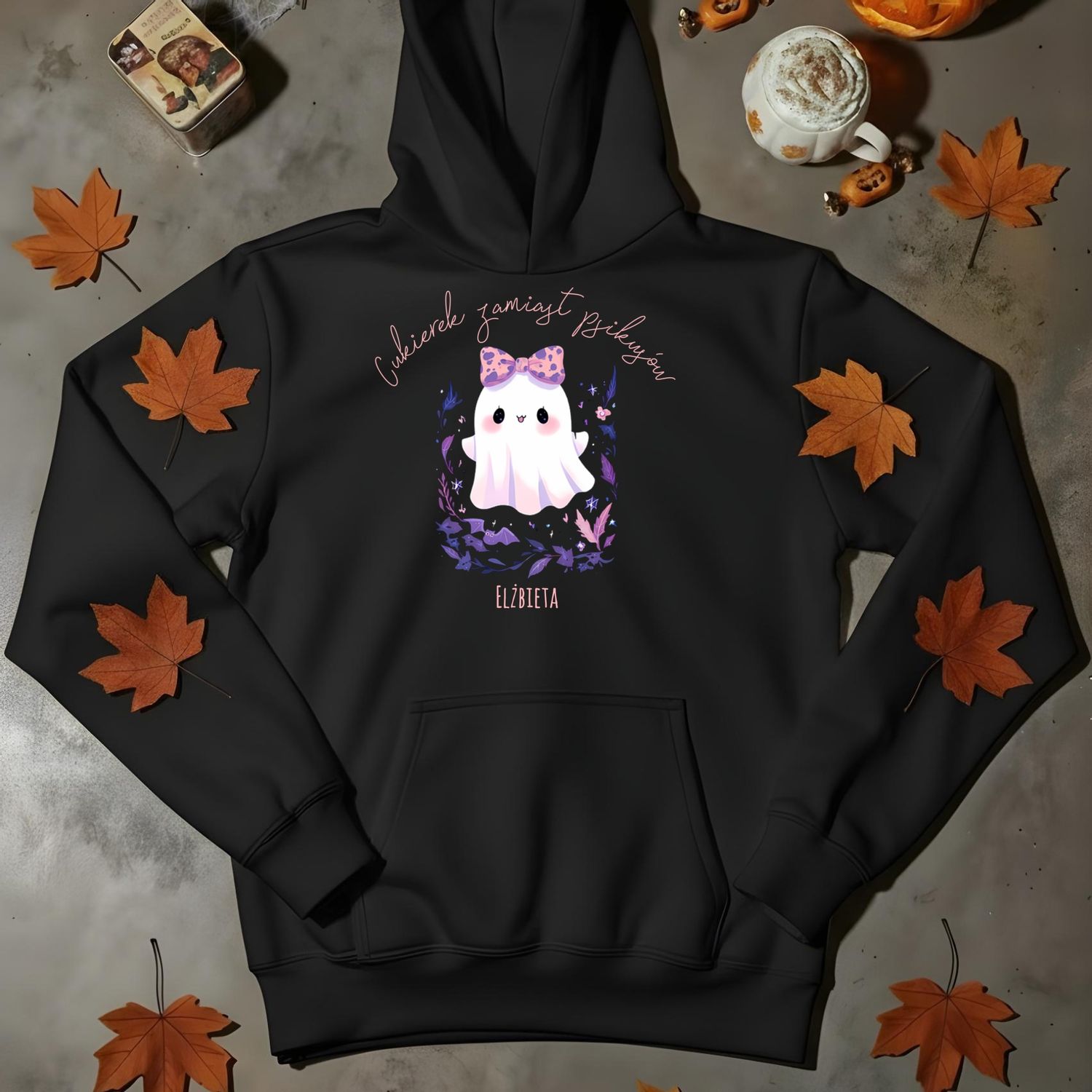 Idealna dla miłośników jesieni, magii i lekkiego humoru. Dzięki opcji personalizacji imienia oraz wyboru koloru tekstu możesz stworzyć swój własny, jedyny w swoim rodzaju egzemplarz.